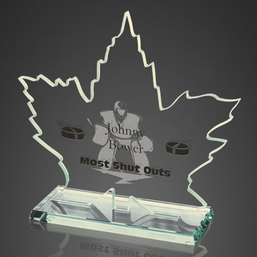 Silhouette cut glass Maple Leaf designs in a range of sizes to meet your award category and inscription requirements.