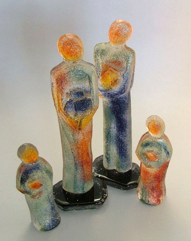 These vibrant sandcast glass sculptures depicting a figure holding a book, sheaf of paper or report are a popular gift for educators, teachers, professors, students, financial officers and accountants, librarians, writers, authors and poets, literacy advocates, and other specialists in any field of endeavor where books and documents are symbolic of work and accomplishment.
