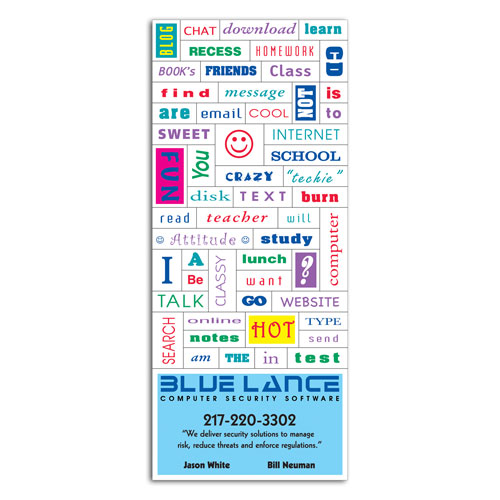 Size: Magnet sheet: 8 1/4" x 3 1/2" including business card magnet Plastic case: 3"x3.25"x3/8" Colours: one colour imprint is standard; additional or PMS matched colours at added charge Imprint: includes 1 colour imprint
