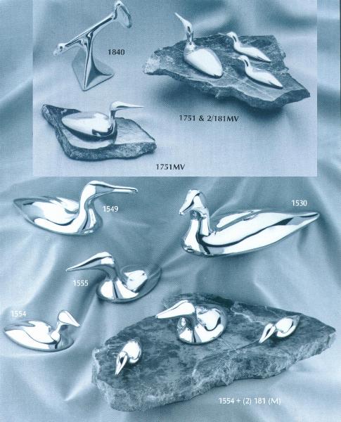 Always popular, these highly polished aluminum sculptures come in a wide range of wildlife designs and sizes to suit any budget. We show the loon designs here, but whales, beaver, moose, bear, and many others are also available.