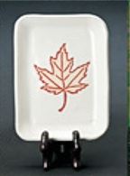 This 6" long stoneware maple leaf dish makes the perfect Canadian gift, packs easily in suitcase or carry on luggage. Available in green, enamel blue, cobalt blue, red, white/red, or white/dark.